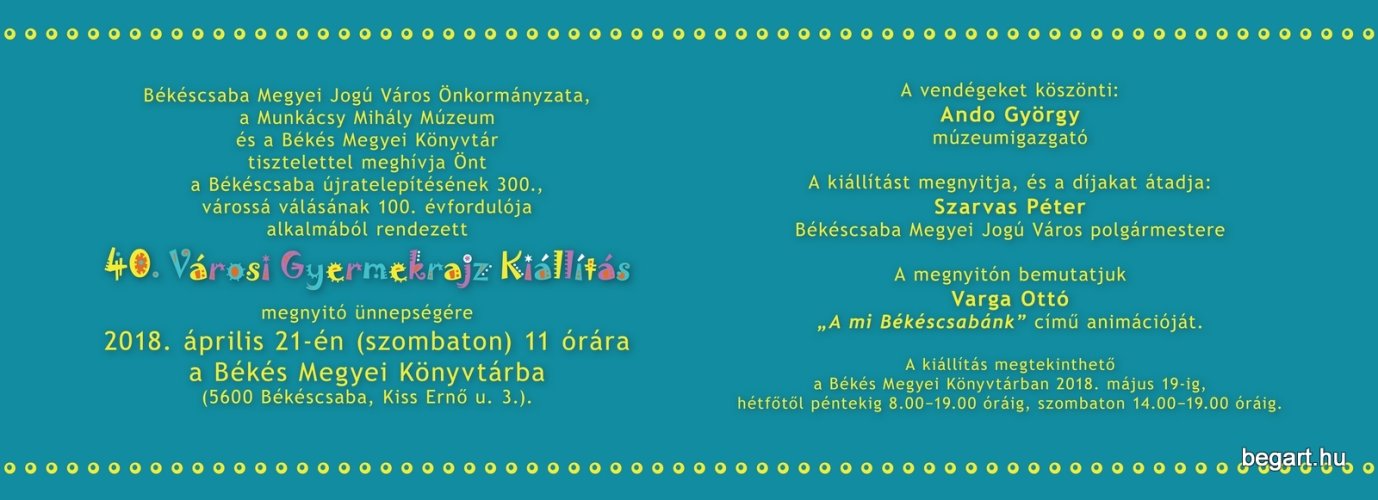 Az elmúlt évekhez hasonlóan az idén is meghirdette a Munkácsy Mihály Múzeum a városi gyermekrajz kiállítást. A mostani már a 40. alkalom a múzeum történetében. Az idei kiállítás témája szorosan kapcsolódik Békéscsaba 300 éves története megünneplésének egész éves programsorozatához. A felkészülés ideje alatt mi is sokat gyűjtögettünk a régi történelmi és néprajzi emlékek között. Jó volt egy kicsit elmélyülni szülővárosunk múltjának tanulmányozásában. A Múzeum átépítése miatt az idei kiállítás a Megyei Könyvtár falai közt rendezték meg.