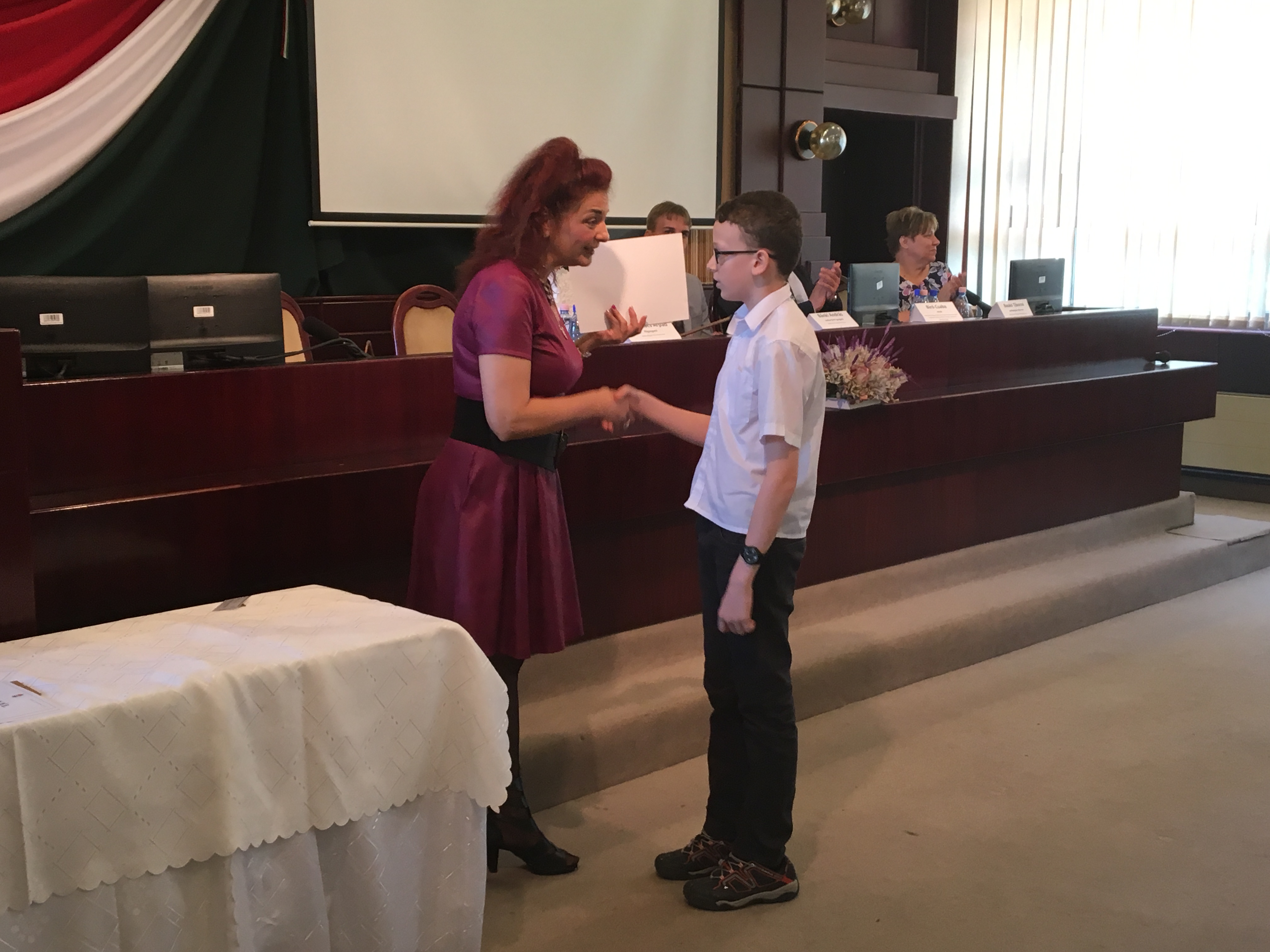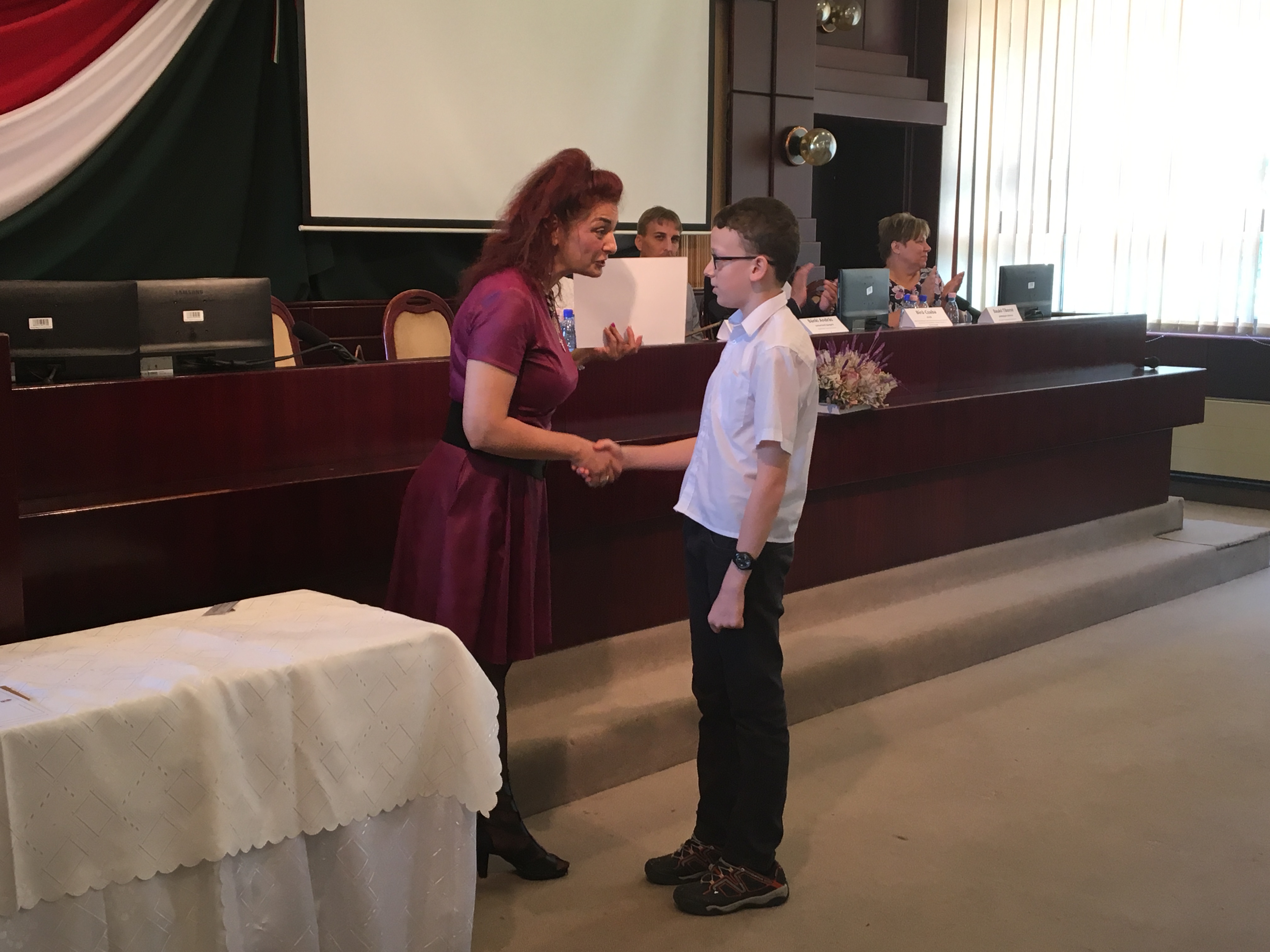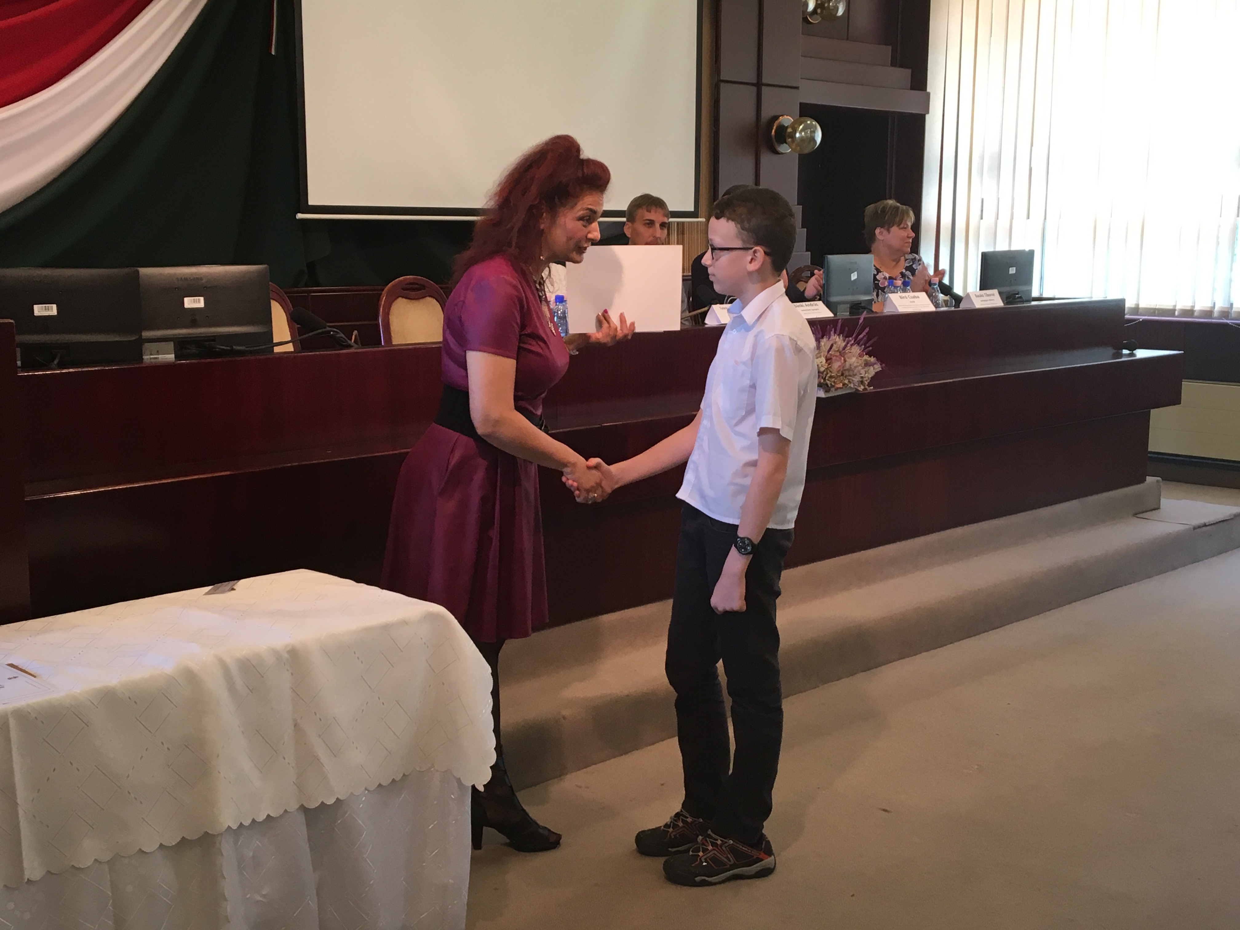 Az országos tanulmányi versenyek Békés megyei fordulóin I-III. helyezést elért diákok és felkészítő pedagógusaik számára megrendezett díjátadó ünnepségen Horváth Kristóf 5.b osztályos tanulónk is ott volt, tanárával, Fazekas Attilánéval együtt.