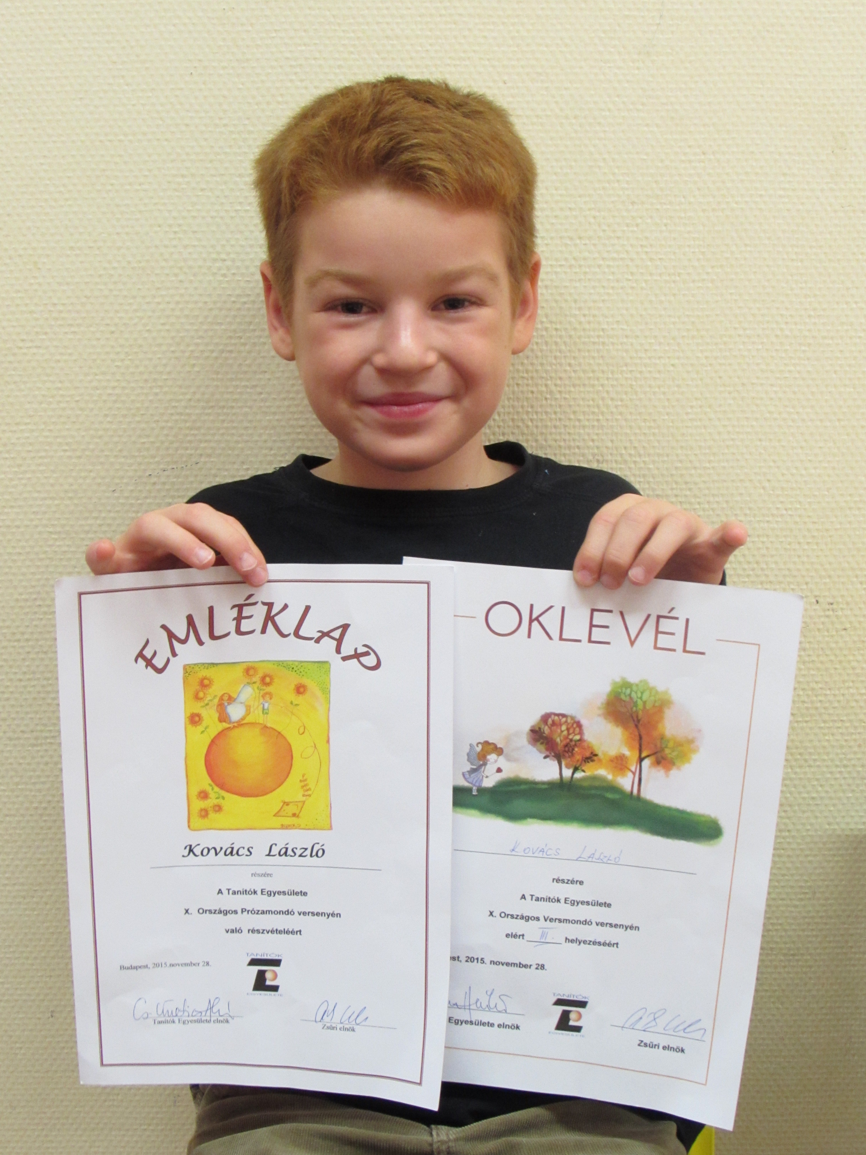 November 28-án, szombaton rendezte a Tanítók Egyesülete Budapesten a X. Országos Versmondó Versenyét. Kovács László 3. b osztályos tanuló ezen a versenyen az előkelő harmadik helyezést érte el.