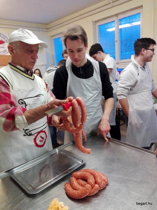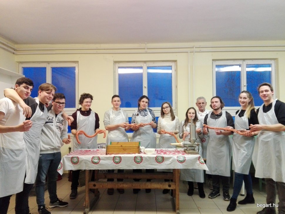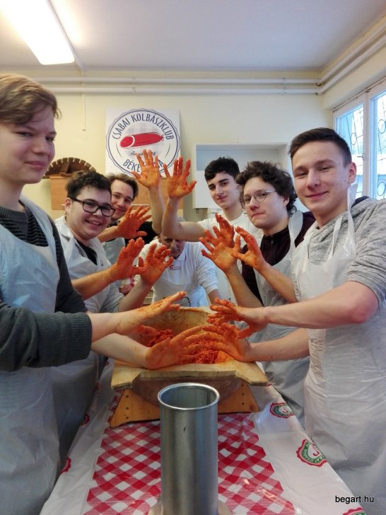 2018. január 25-én csapatépítő kolbászgyúráson vehetett részt közel húsz Rákóczi szövetségbeli diák az Uhrin Zoltán Kolbászházban. Ez nagyon izgalmas program volt mind a résztvevő diákok, mind a kísérő tanáraik számára, ugyanis betekintést nyerhettek az igazi Csabai kolbász elkészítésének menetébe. Emellett a lányok még szilvalekváros papucsot is készítettek. A remek hangulatot előkészítette az általános ismertető a Csabai kolbászról mint hungarikumról, illetve annak kiemelése, hogy mennyire fontos manapság a hagyományaink, főleg a békéscsabai hagyományok ápolása. Ezt szem előtt tartva jelentkeztek a programra a BEG Rákóczi Szövetség tagjai, ami emellett kiváló csapatépítő lehetőséget is biztosított a résztvevőknek, hiszen meghívtuk elballagott diákjainkat és leendő tagjainkat a 8. évfolyamból. Zárásként megsütöttük a készített finomságokat, majd jóízűen megettük őket. Köszönjük a lehetőséget! Sok élménnyel, tapasztalattal gazdagodhattunk!