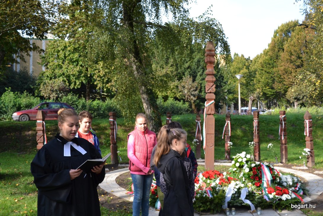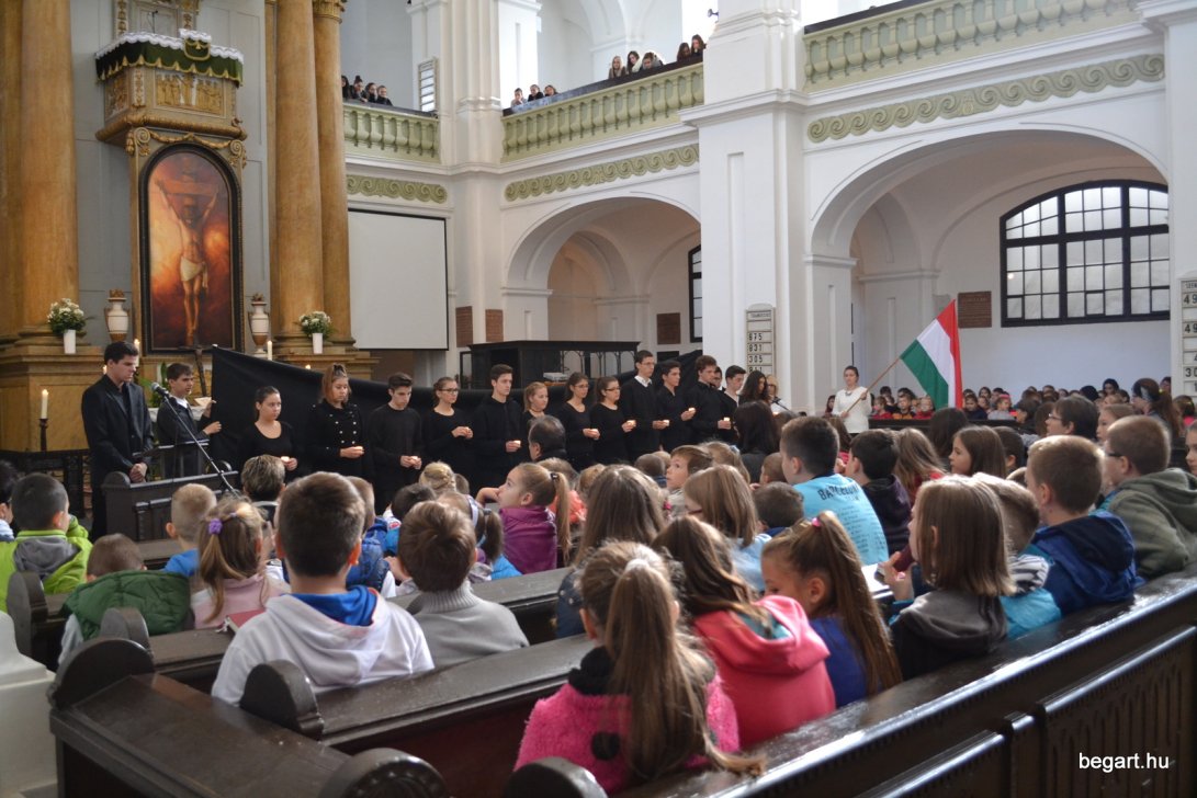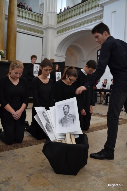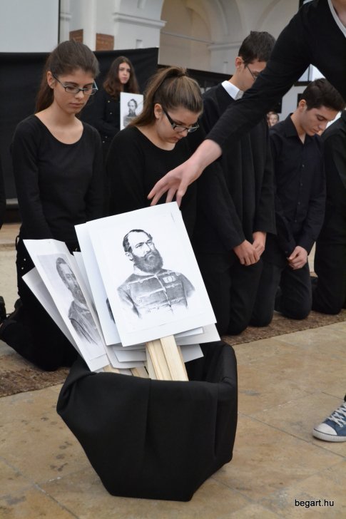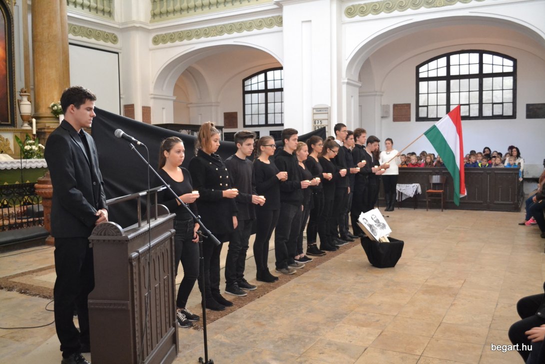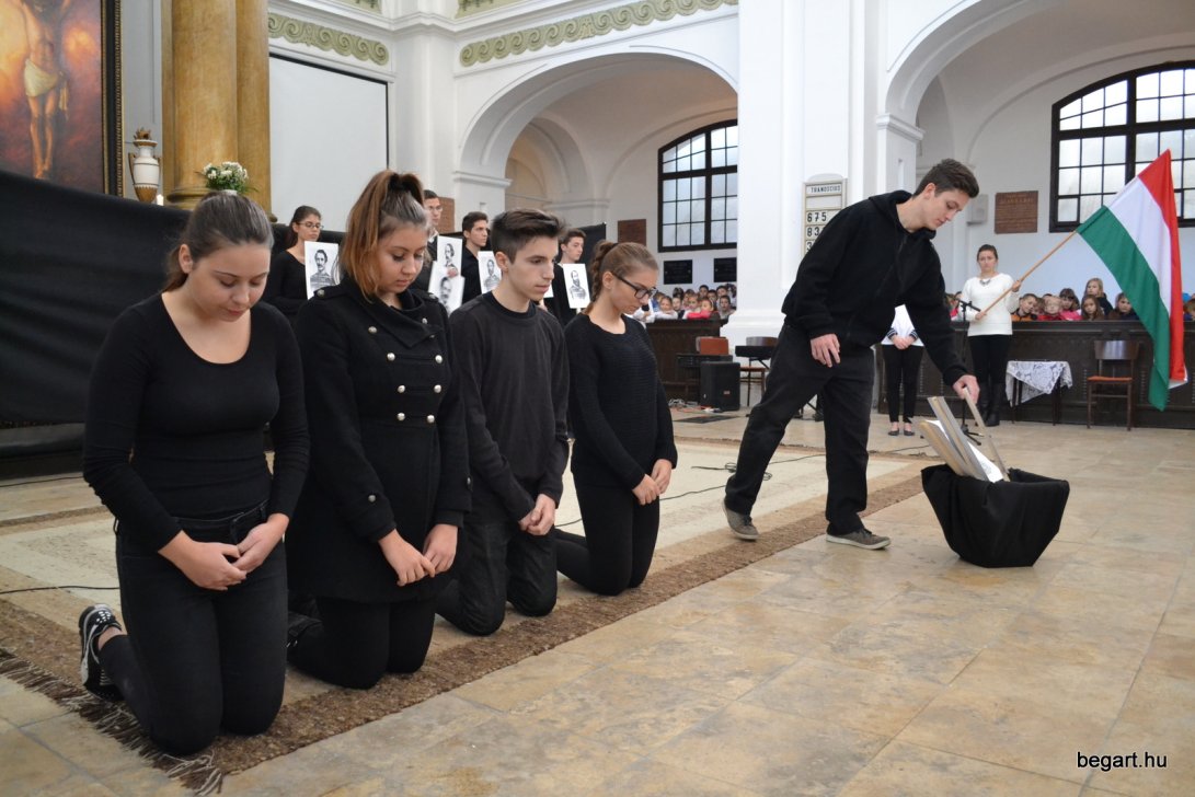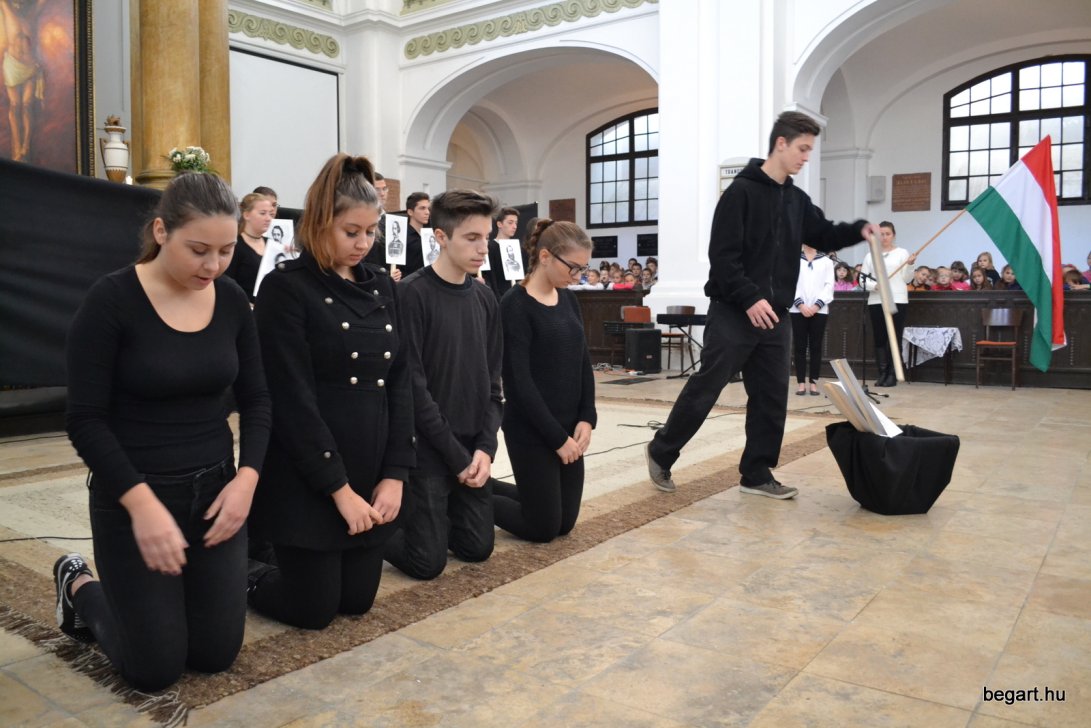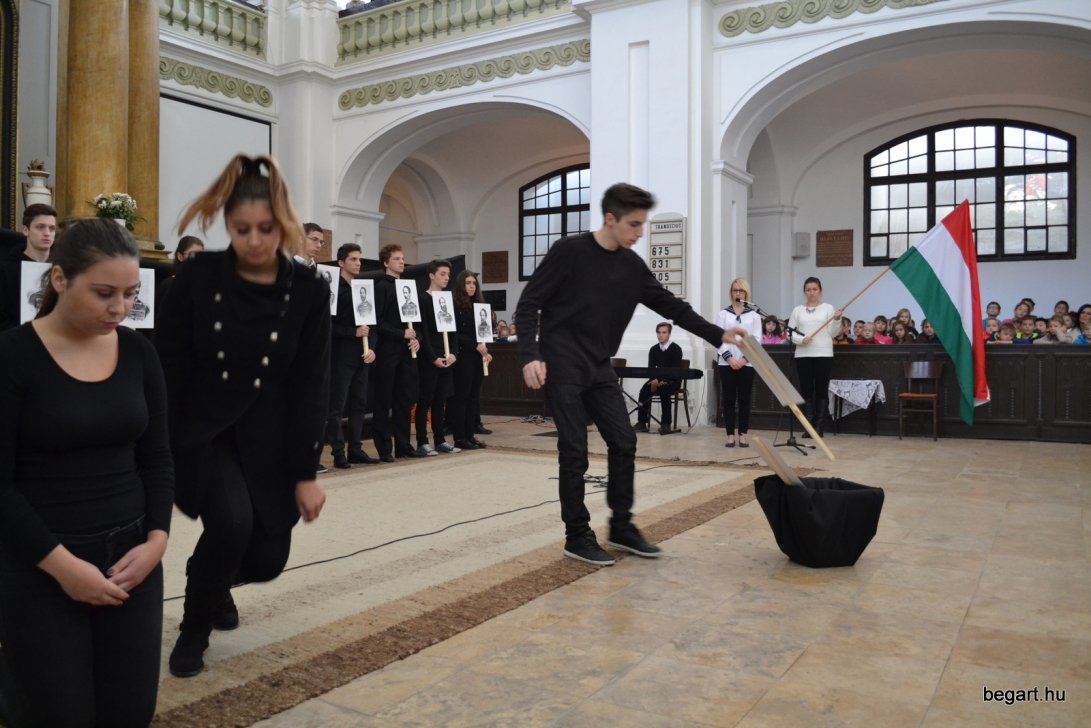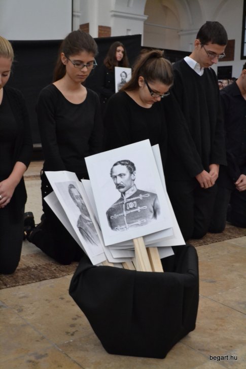 A 10.F és a 9.C osztály diákjainak közreműködésével tiszteletünket fejeztük ki irántuk műsorunk keretein belül. Ezt követően iskolánk képviselőivel elhelyeztük koszorúnkat a 13 aradi vértanú számára kialakított emlékhelynél. Halász Alexandra iskolalelkész