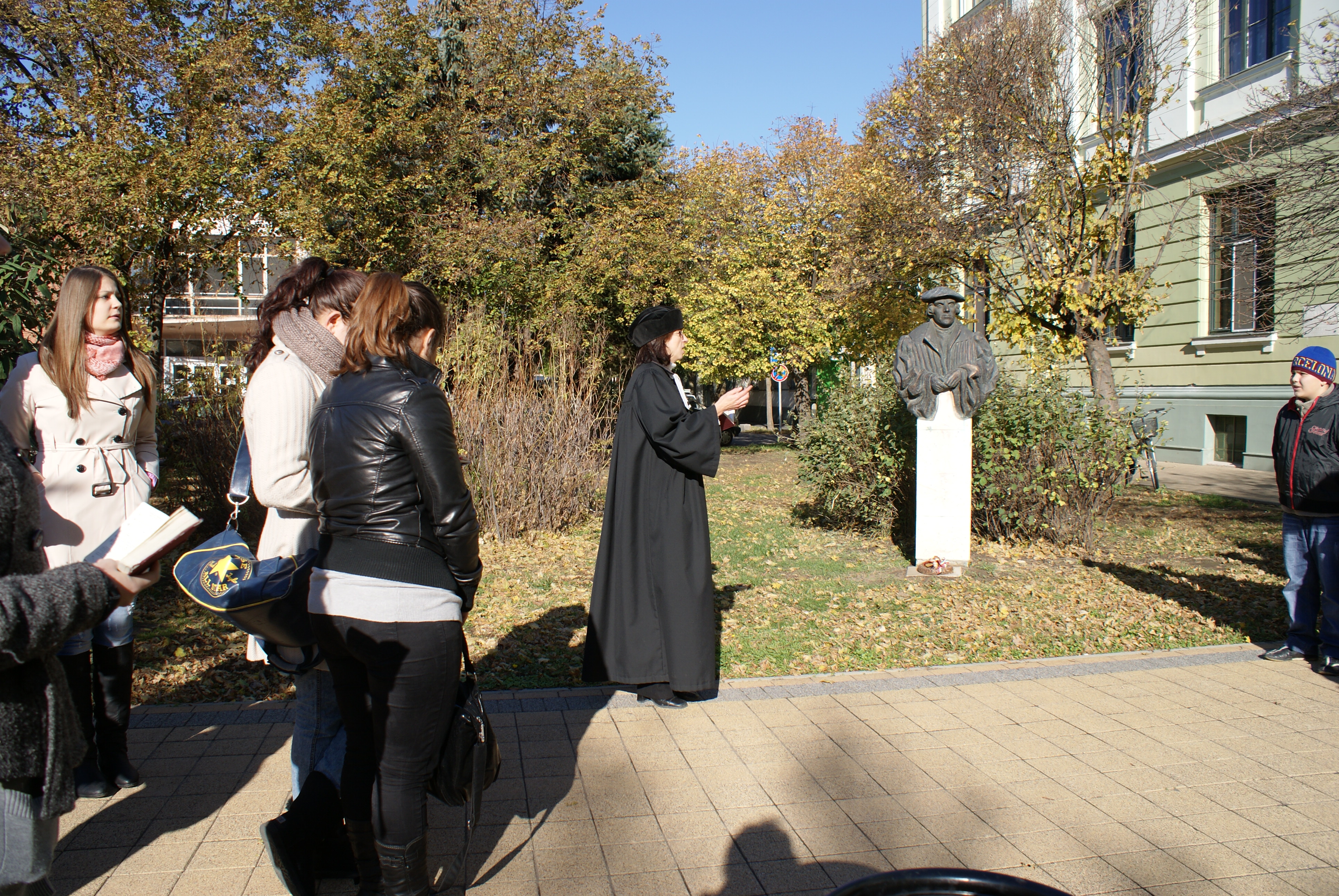 November 7-i áhítatunk után megkoszorúztuk a Luther-szobrot és a Szeberényi-emlékművet.