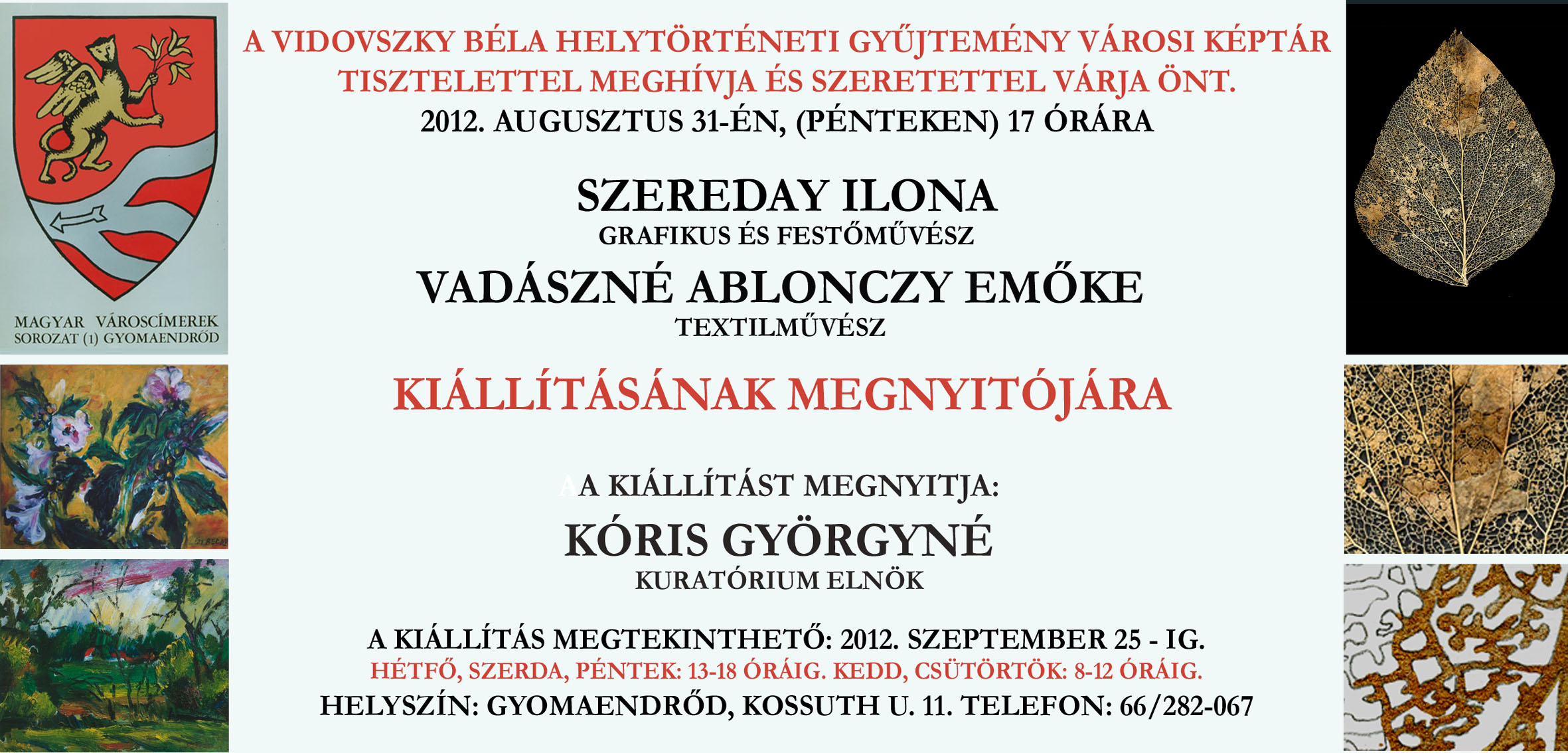Szereday Ilona grafikus- és festőművész és Vadászné Ablonczy Emőke textilművész kiállítása nyílt augusztus 31-én Gyomaendrődön.