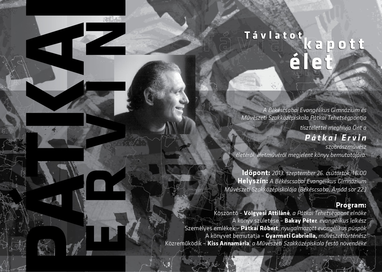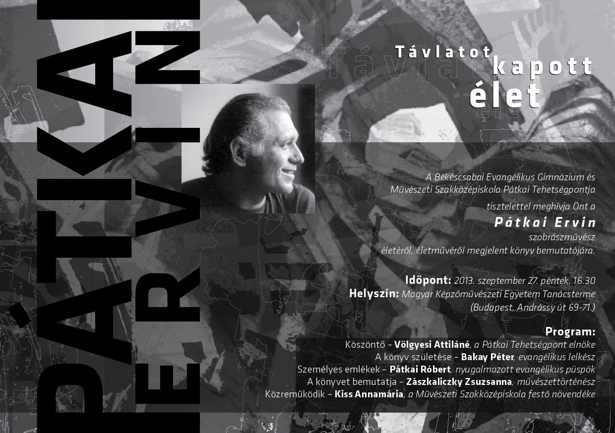 Ami neki, Pátkainak adatott, élet-töredék. Ami nekünk maradt, szárnyakat adó töredék. És hál’ Istennek, vannak, akik a töredékek összegyűjtésén, dokumentálásán, továbbadásán, nyilvánossá tételén fáradoznak. Ilyen a Képzőművészeti Egyetem és ilyen egy vidéki középiskola a nagy magyar Alföld sarkában, Békéscsabán. Köszönet érte.