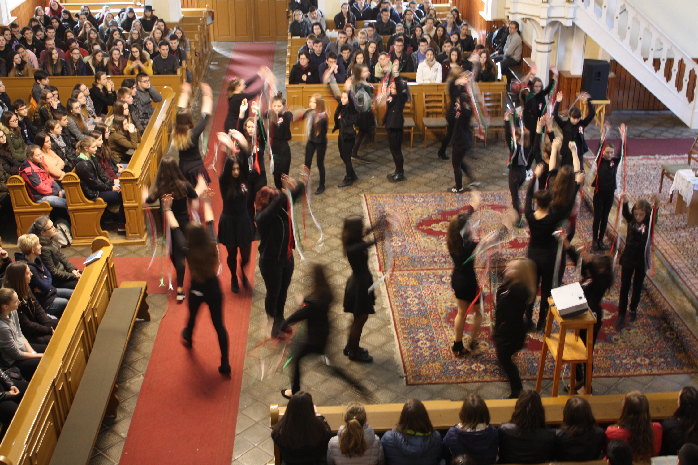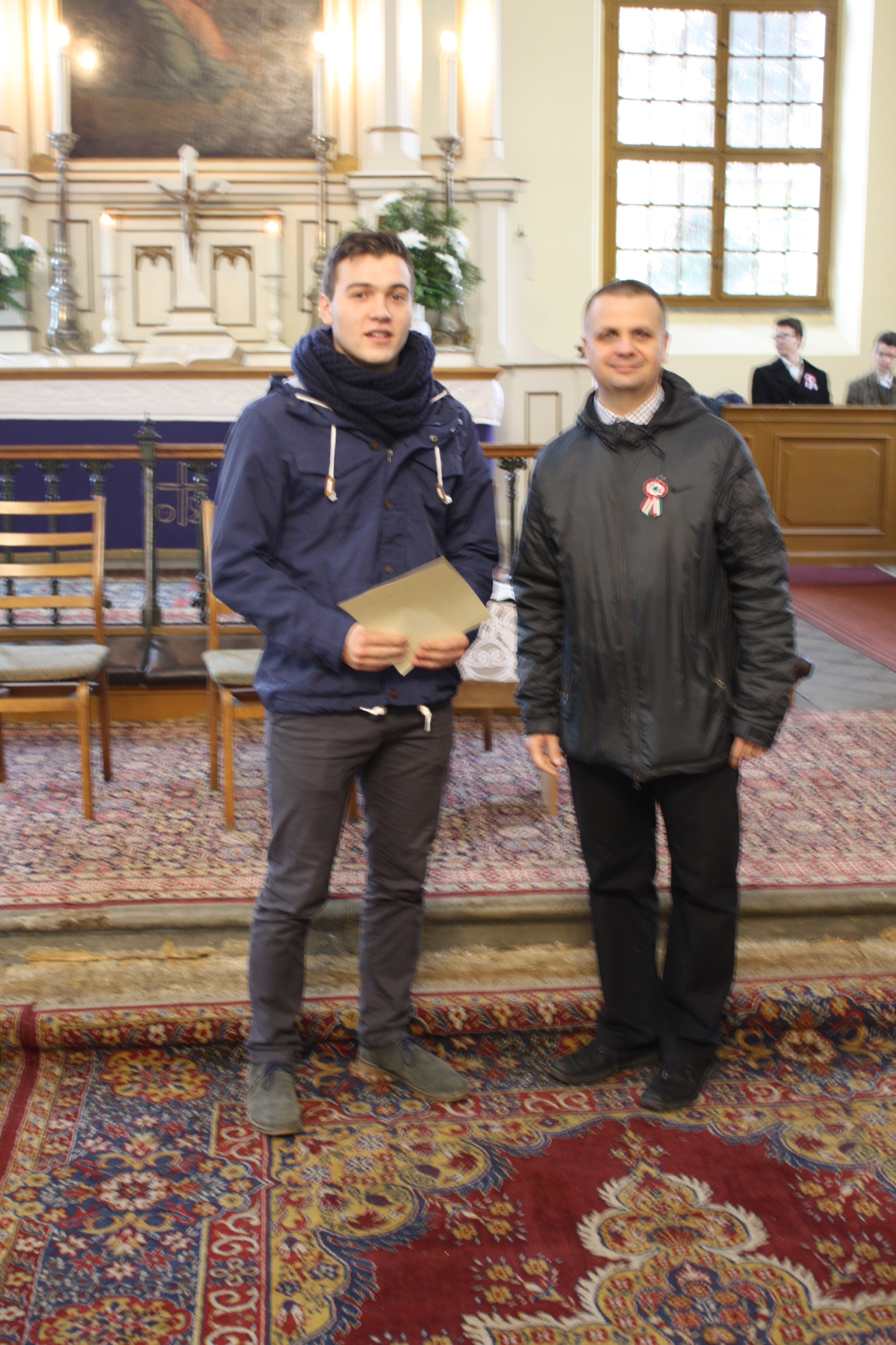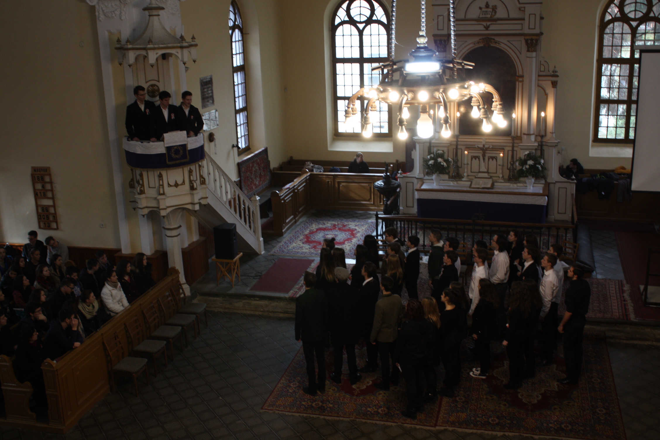A március 20-i áhítat diákjaink szívet-lelket melengető műsorával indult. A himnusz hangjaira még a napsütés is beragyogta a templomot. Harangozó Imre emlékező szolgálata után Köveskúti Péter, intézményünk igazgatója adta át Pap Gábor 12.D osztályos tanulónknak a Piroska díjat.