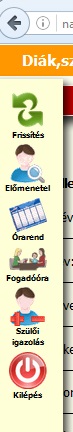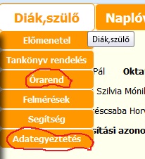 A Diák, szülő fület lenyitva két hasznos információt találnak, az Órarend és az Adategyeztetés menüt.