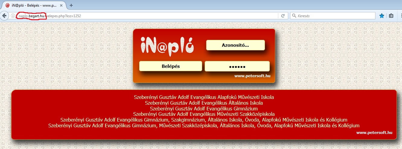 A belépő oldal a naplo.begart.hu címen található.