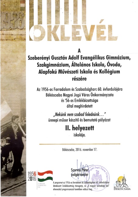 2016. október 24-én - a diák-istentisztelet keretében - Harangozó Imre katolikus hittantanár igehirdetése után iskolánk tanulóinak színvonalas műsorát tekinthettük meg.