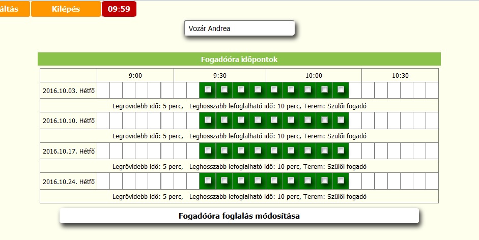 A fogadóóránál a tanár kiválasztása után be is lehet jelölni, mikor szeretnének beszélni vele.