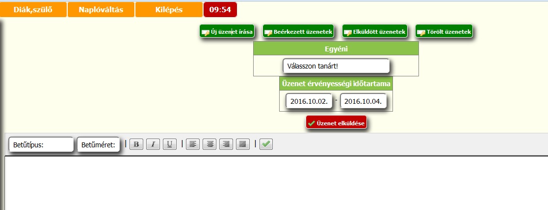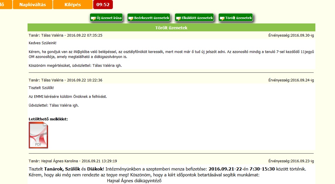 A jobboldali menüben találják az Üzeneteket. Itt olvashatják az iskola leveleit, és itt írhatnak is nekünk.