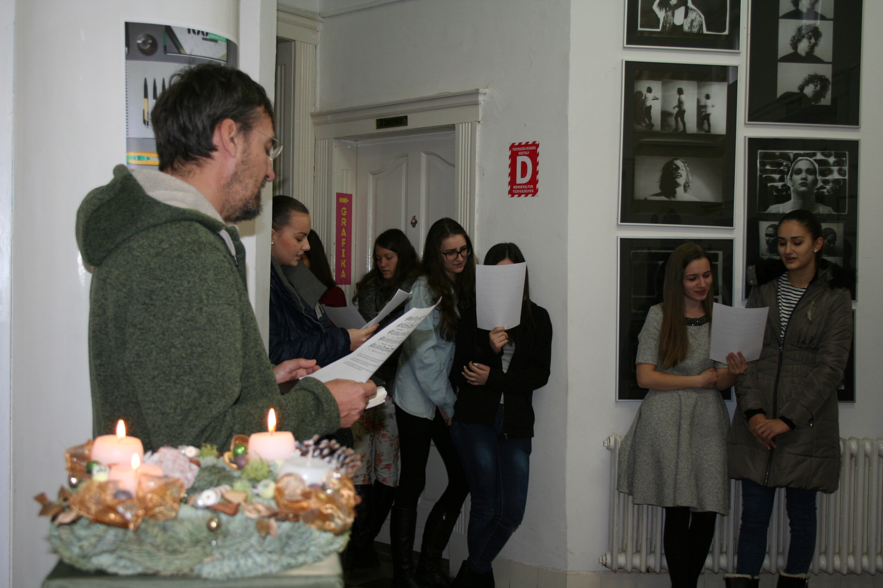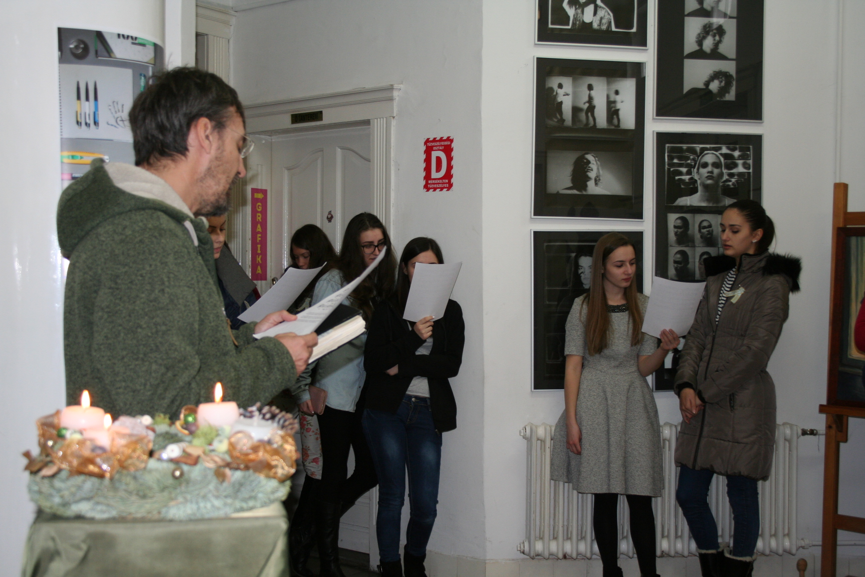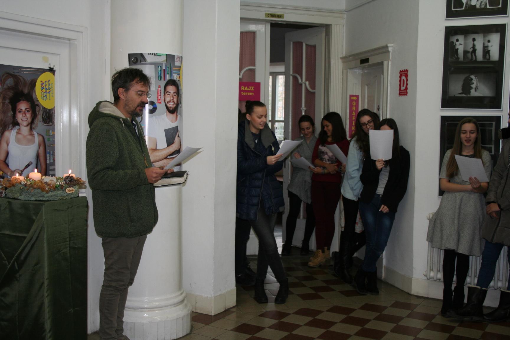 A Peron Presszó mozdonya, Mikulássá változott a BEGart 11, és 12. grafikus csoportja segítségével, Flóra Virág tanárnő irányításával ma Mikulás napon! Öröm volt nézni az elmúlt hét műhelymunkáját! Ezek a diákok még meséket és legendákat álmodnak formába, és tudnak együtt dolgozni. Csillogó szemmel, boldog együttműködésben alkottak, és osztották a munkát maguk között. Simán varrtak a fiúk és drótoztak a lányok. Órákon keresztül varrták a függönymaradékból álló csinos szakállt. A mínuszokban összeállított óriás Mikulás január 6-ig lesz látható a téren! Jó volt együtt lenni velük, jó látni, amikor élettel teli fiatalok egymást segítve létrehoznak valamit. Most egy Mikulást. Köszönöm!
